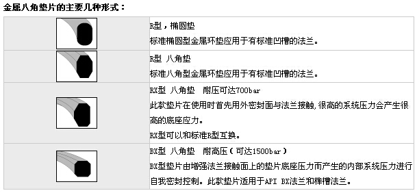金属八角垫片由锻造及热处理和机械加工制成,是一种应用于油及气体的管法兰,压力容器,高速接合面,高温高压阀盖等的金属密封垫片,尤其压力、温度有波动的场合,仍能保持较好的密封性。 常用的R型垫片按截面分为椭圆型或八角型,标准的R型环形垫片按API 6A以及ASME B16.20标准尺寸制造,最高使用压力是10000PSI。在梯形槽法兰中八角垫与椭圆垫可以互换。RX型八角垫适用于压力增强的标准R型环状垫片,适合于R型一样的法兰槽密封面。BX型八角垫适用于压力增强并且设计应用高达15000PSI压力系统。有多种材质及形式适用于不同的设计与操作要求,参考材质特性表。 注意:选用八角垫材质硬度应低于法兰面15~20HB,而且建议不要重复使用。 适用标准: ANSI B16.5-1973 、 JPI-75-15-70 、 GB 699 、 GB1220 、 JB755 、 HG20633-97 |